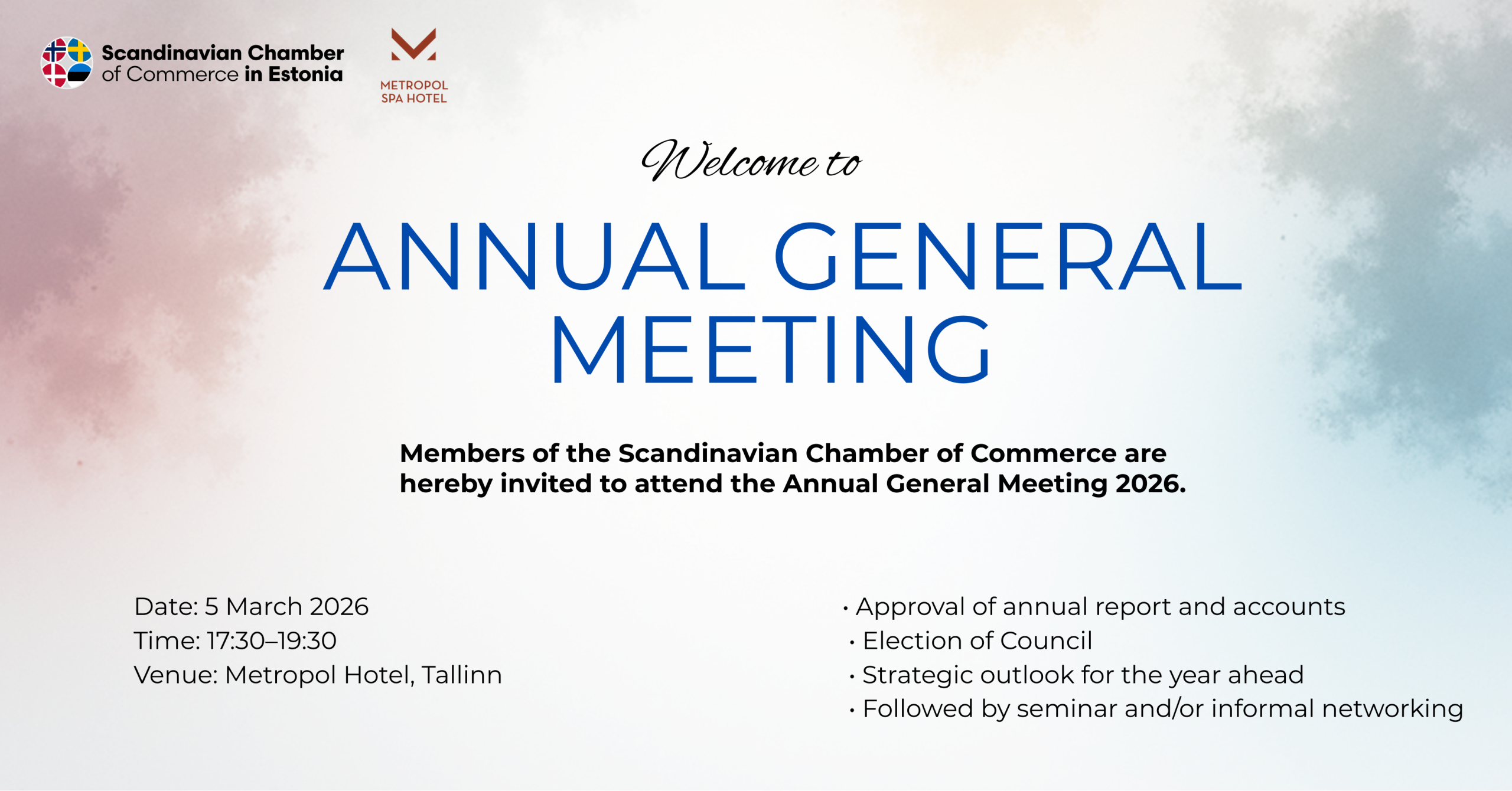 Members of the Scandinavian Chamber of Commerce are warmly invited to attend our Annual General Meeting (AGM) 2026, taking place on 5 March at Metropol Spa Hotel.