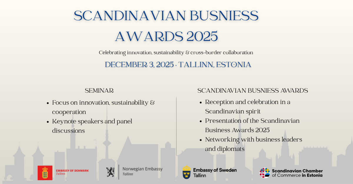 Scandinavian Business Awards 2025 – Afternoon Seminar & Awards Ceremony 3 December 2025 – Tallinn The Scandinavian Chamber […]